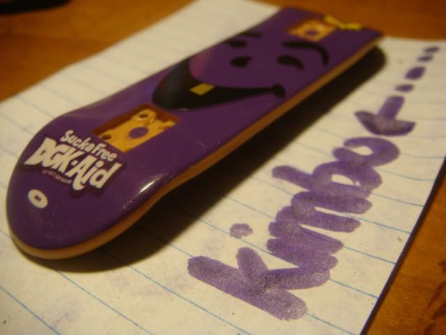 so the plan was to ask all the people on my buddy list, and texted all the people on my phone to take pictures of things that are purple and tag it up as KIMBO.